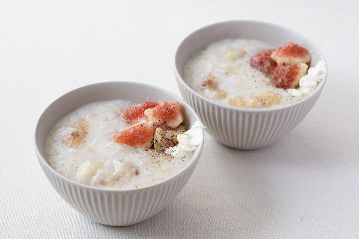 隠し味のバターと共に、コクうまなミルク粥に仕上げました。