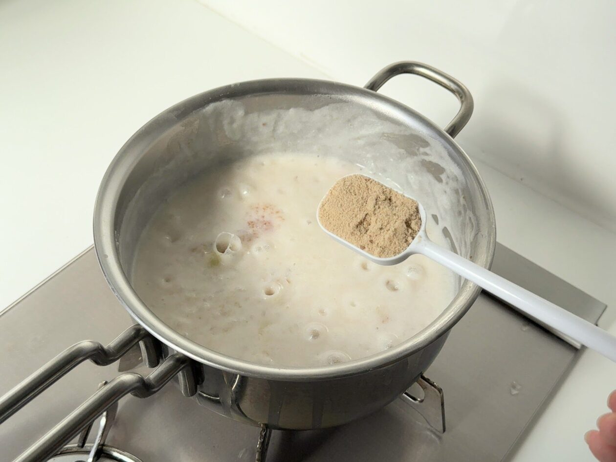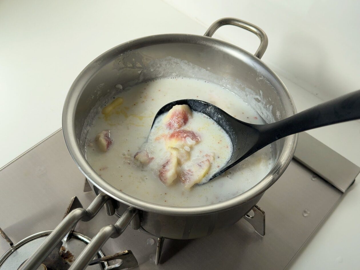 煮込んだミルクとバターが、チーズっぽいコクを出してくれて、すっごくおいしい……!