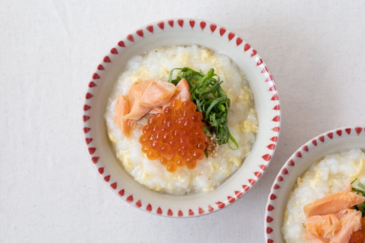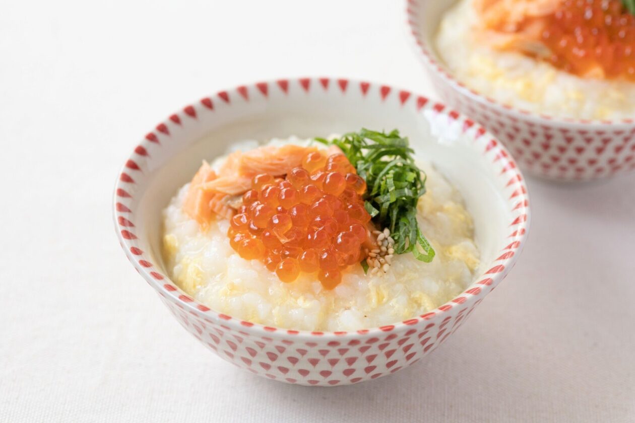 繊細ないくらのプチプチが、おかゆのやわらかさをいっそう引き立てる!元気が欲しい日にもおすすめの一皿です。