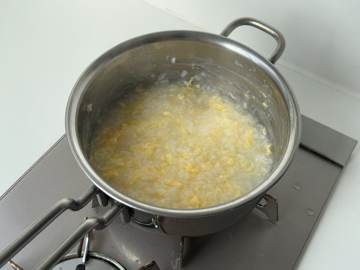 たまご粥をつくる。レトルトの場合は温める。