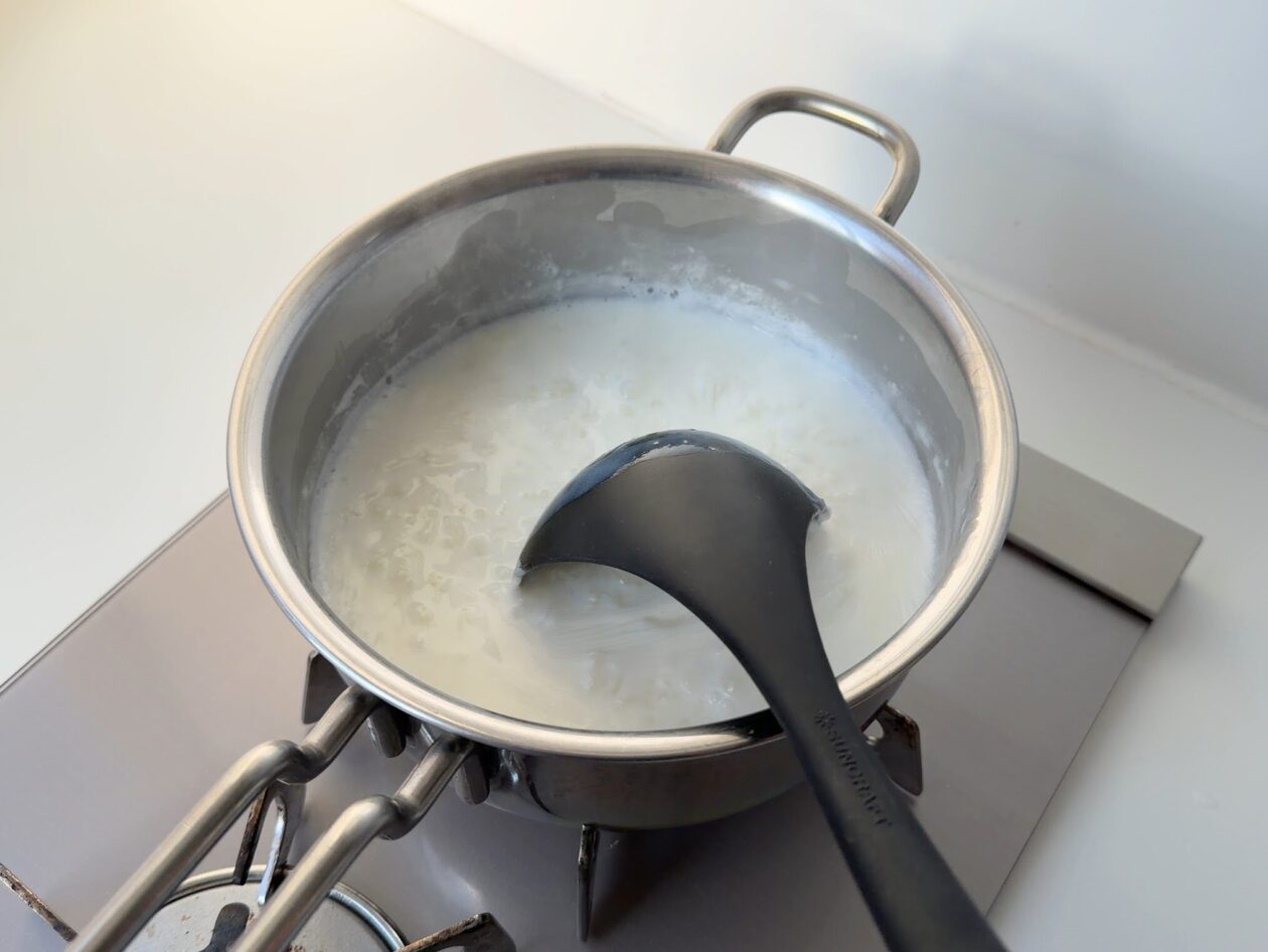 また、濃い牛乳は膜が張りやすいので、煮立てすぎない優しい火加減で混ぜながら煮込むと◎