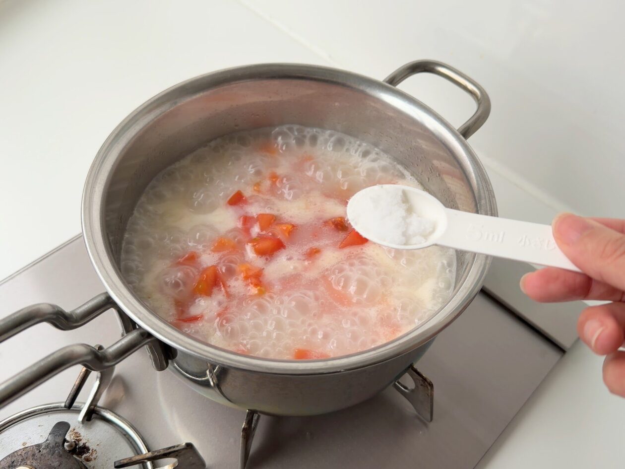 塩で味をととのえる。鍋全体をゆっくりとまぜる。