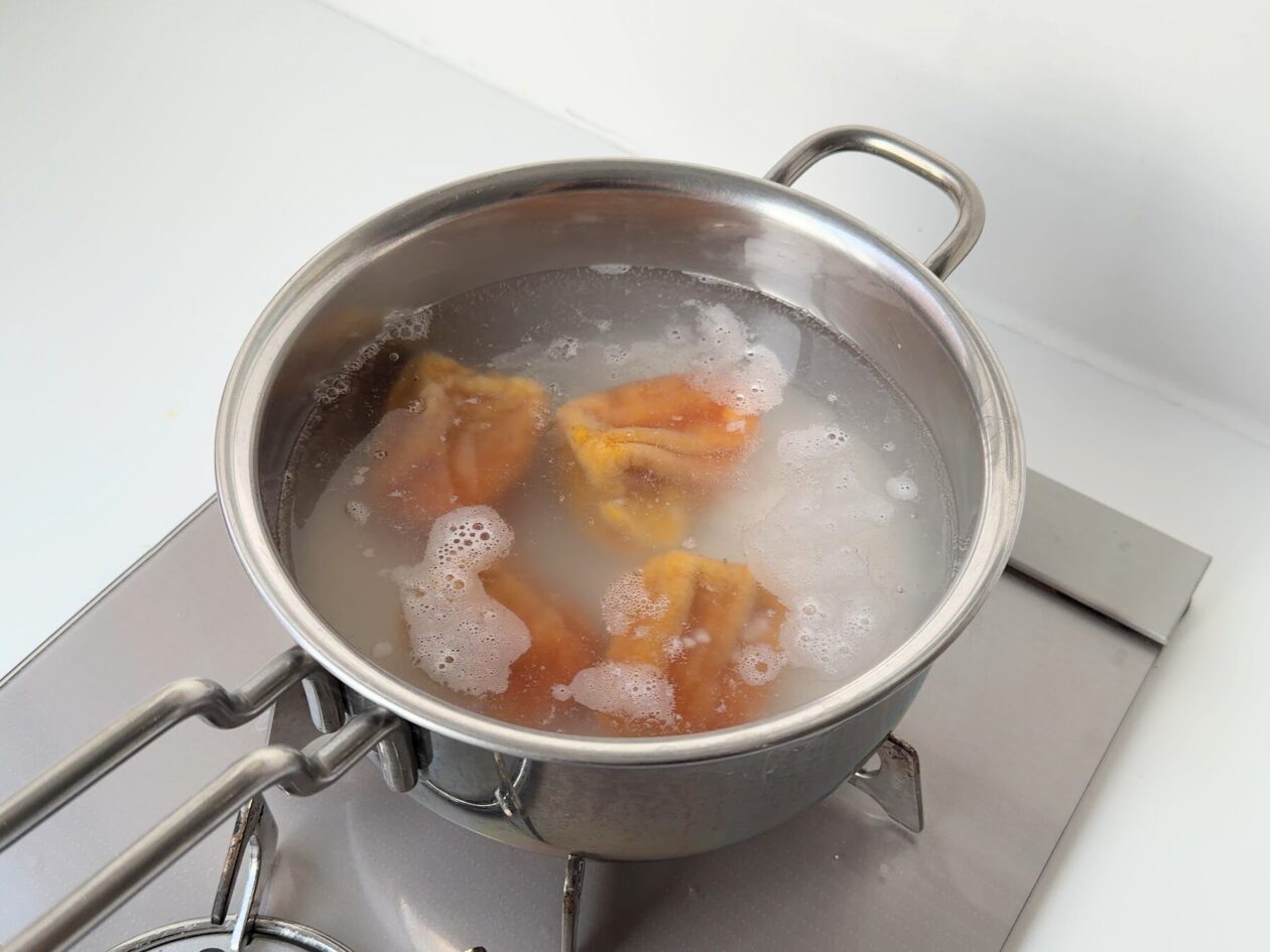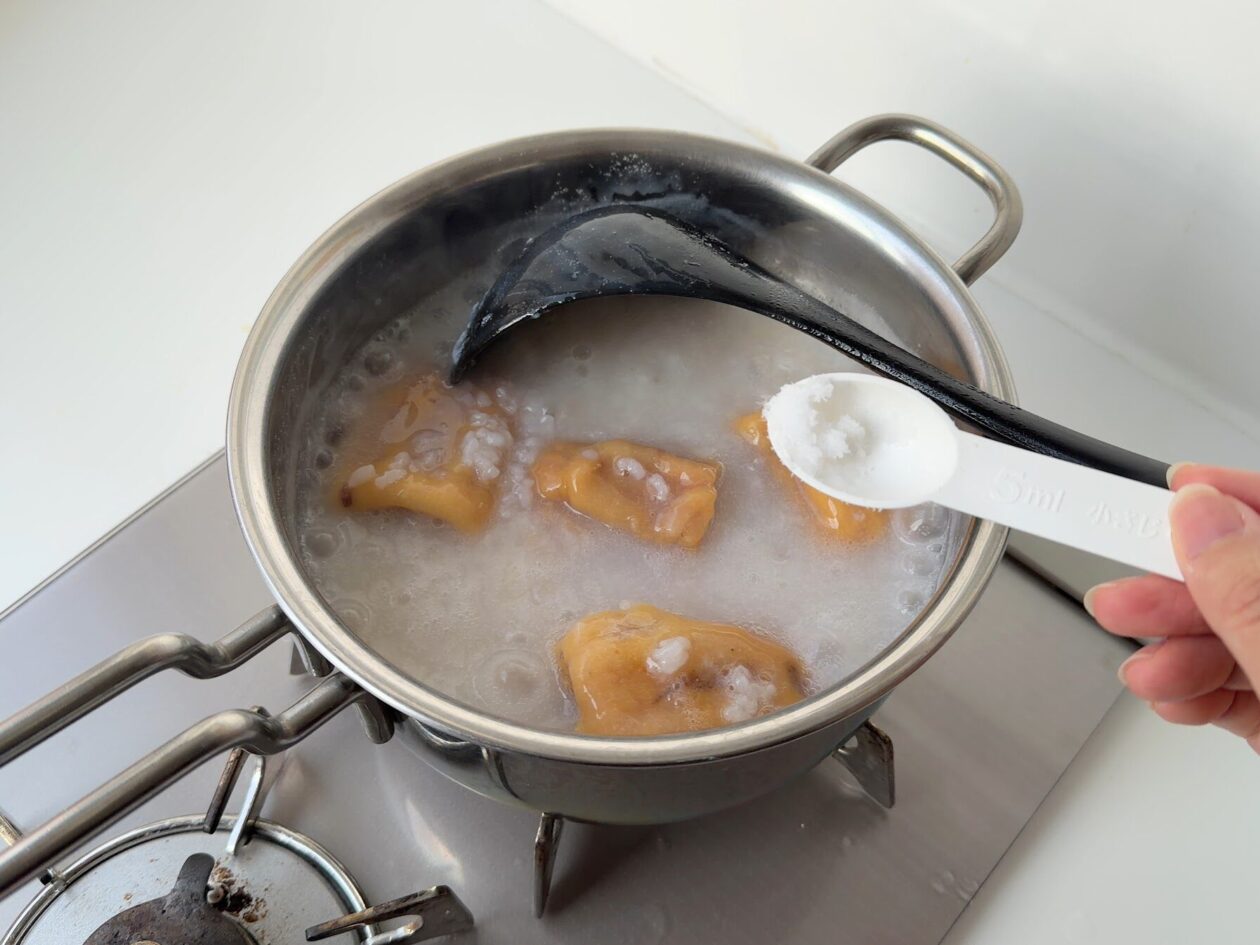 さっとアクをすくいとり、塩で味をととのえる。鍋全体をゆっくりとまぜて火を止める。