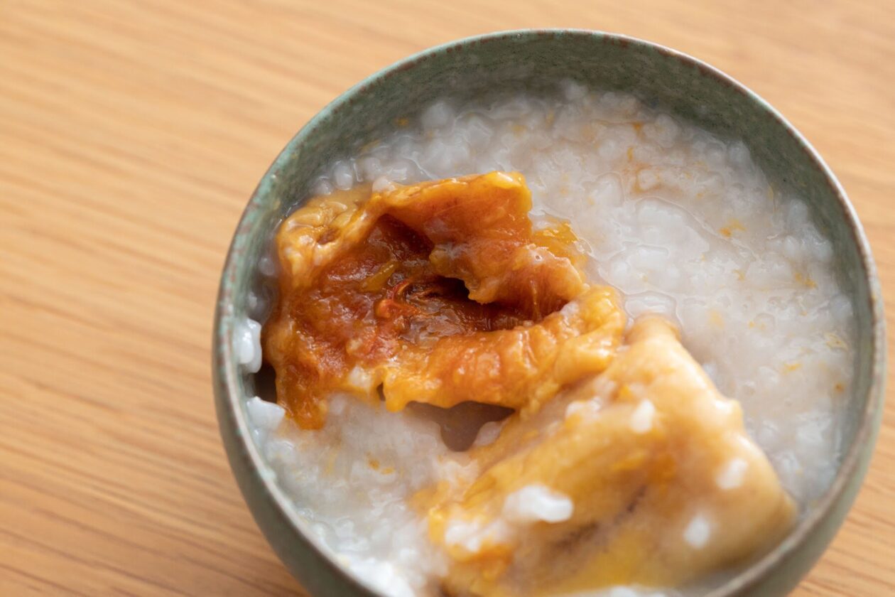 干し柿のおかゆは、煮込んだことでグッと甘味が増しちゃって。和菓子の基準崩壊させちゃうなあ、なんてことを思ったりしました。笑