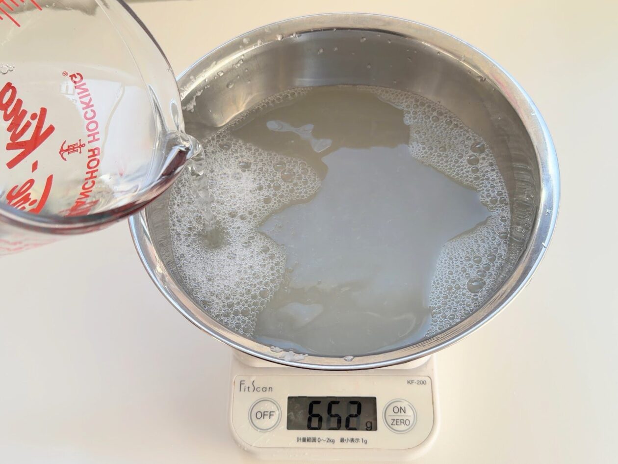 水で薄めて調理しますので、量をきっちり気にしなくてもOK!今回はだいだい1/2本分の大根おろしの汁を使用しました。