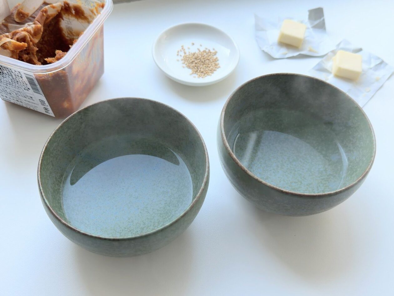 冬は特に!お湯で器を温めてから盛りつけると、あつあつが長続きでおいしいですよ。おいしいひと手間。