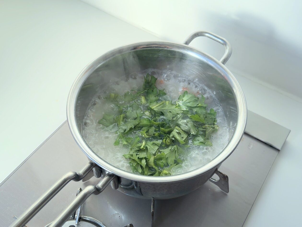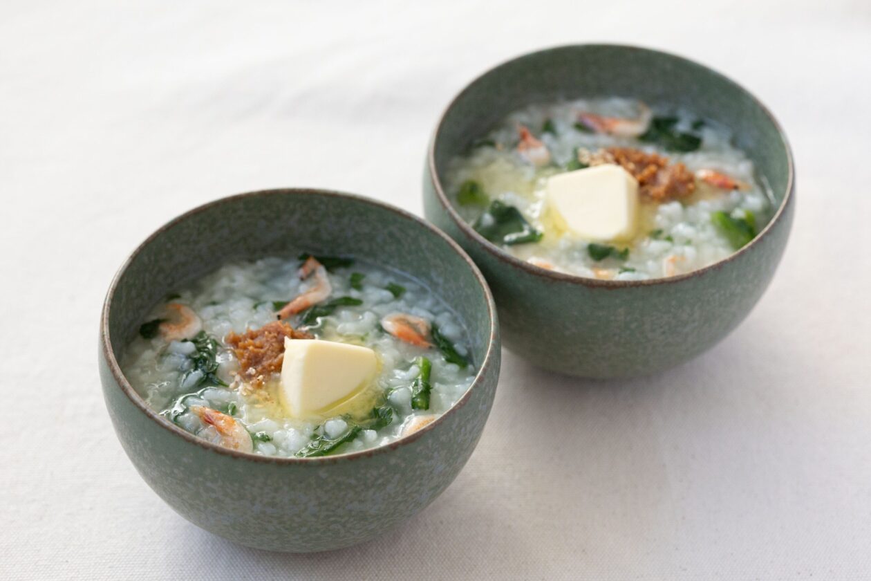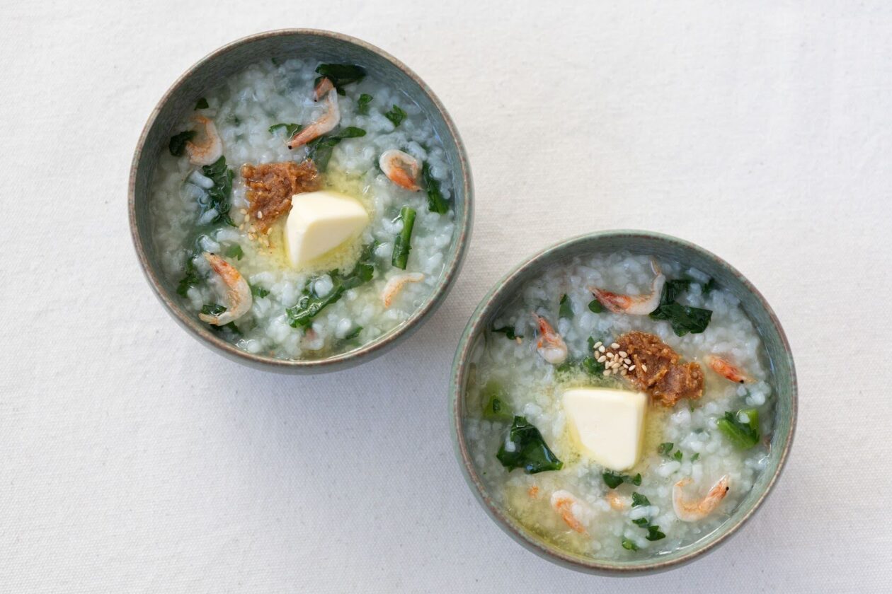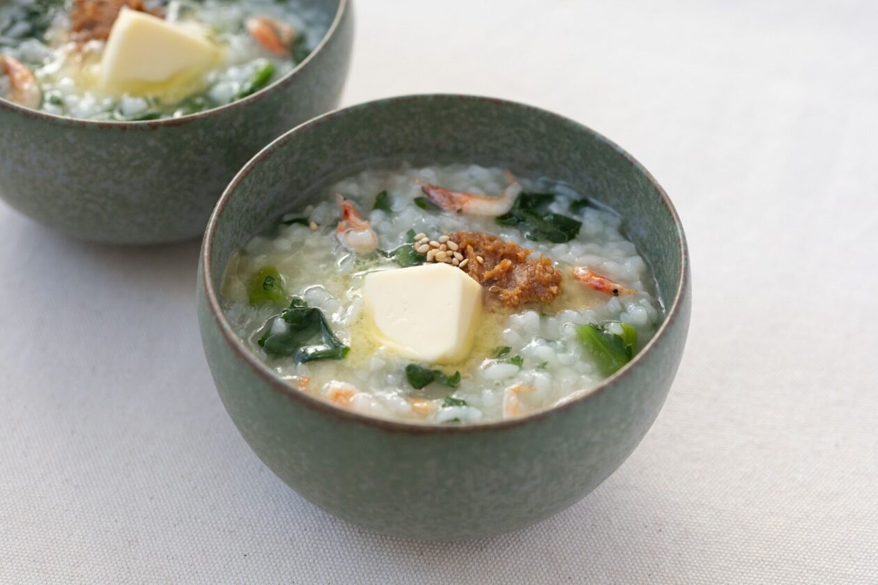 春菊と桜えびのおかゆのレシピ