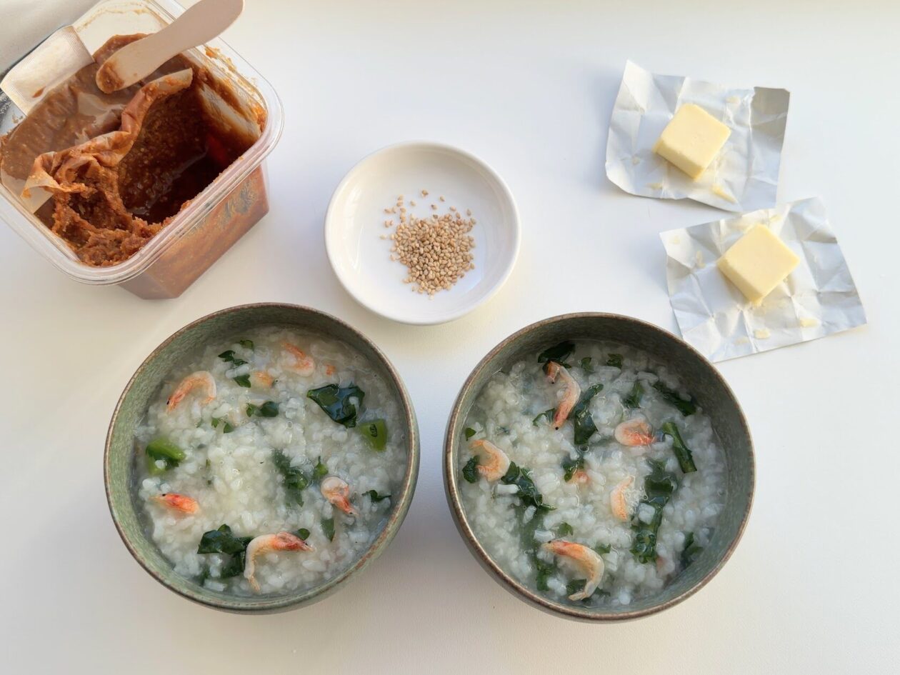 草を食んでリセットする野生動物ってこんな気持ちなのかな〜なんて思いながら作った今朝のおかゆ。