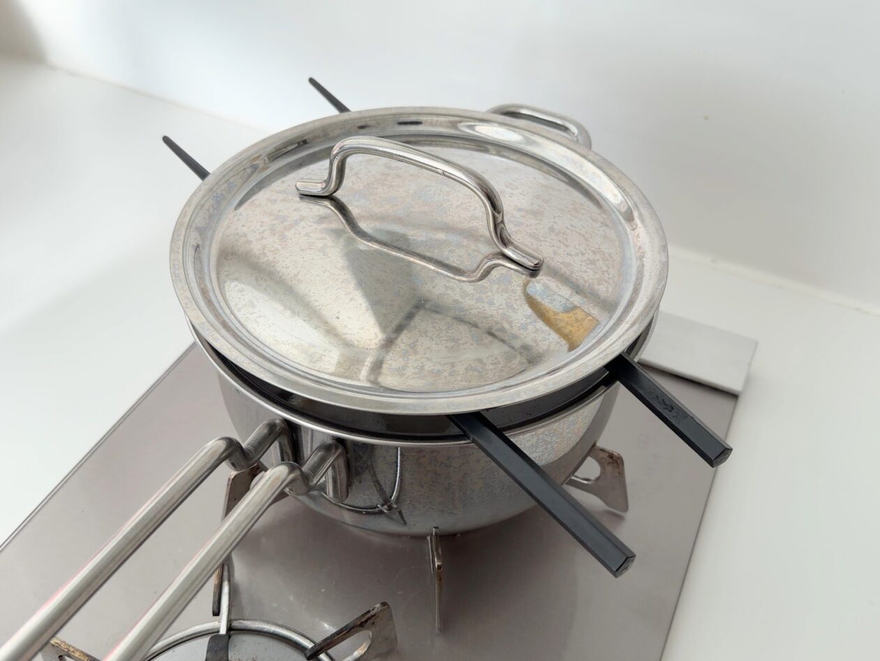 鍋に箸をかませることで吹きこぼれにくくなります◎