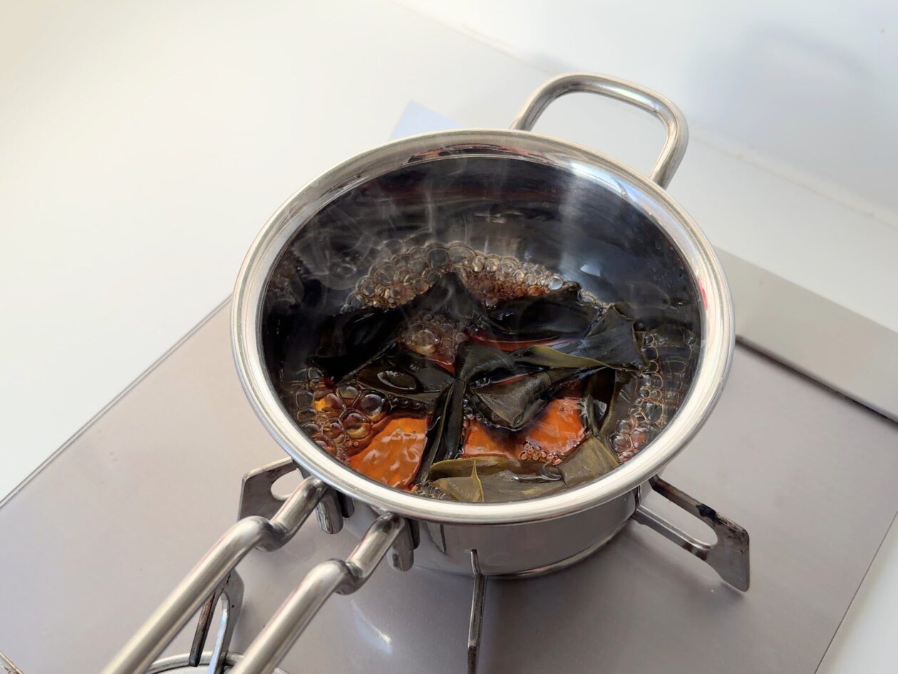今朝はおでん用の昆布を砂糖と醤油で煮てみました。
