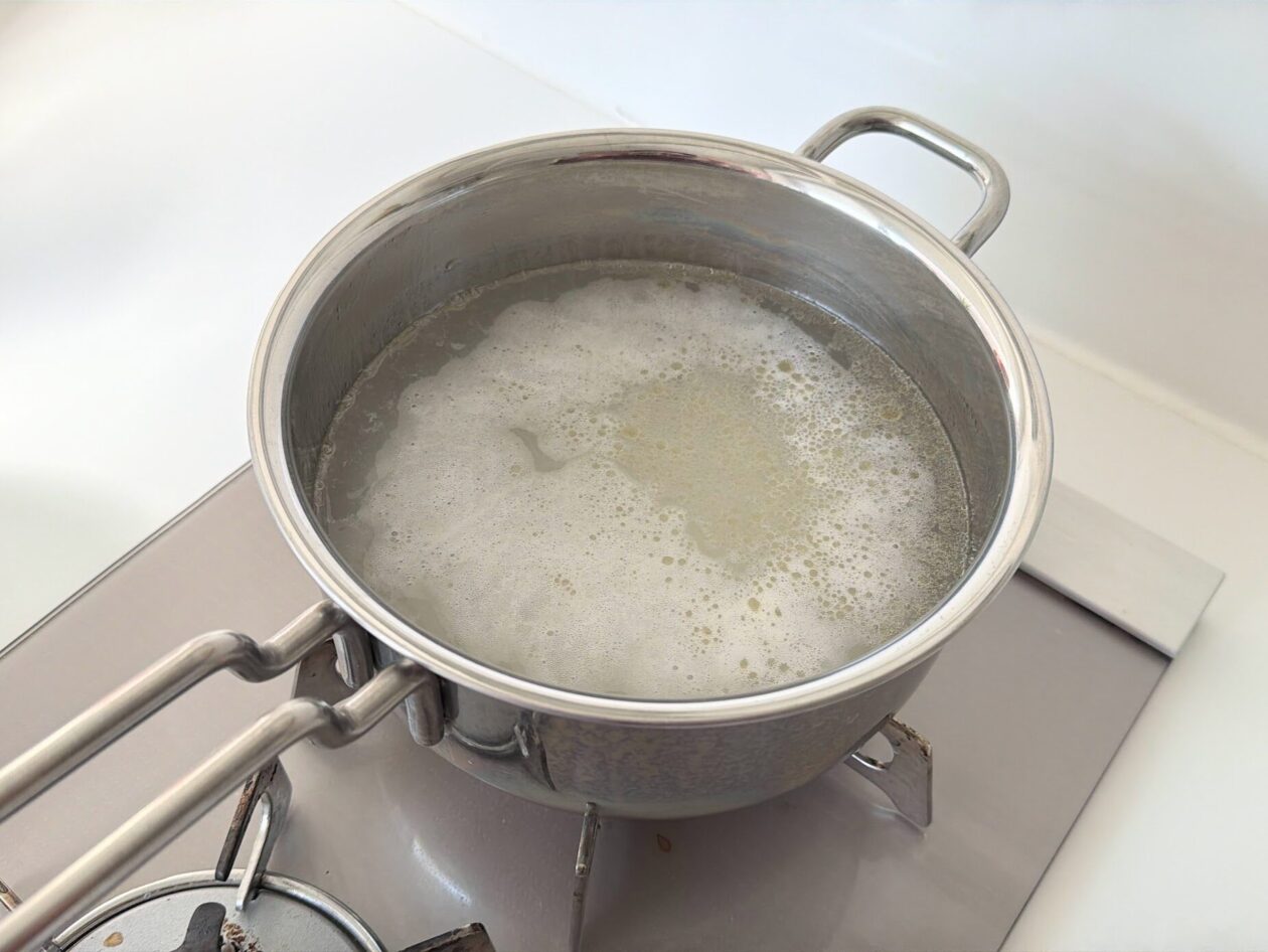 鍋に箸をかませることで吹きこぼれにくくなります◎