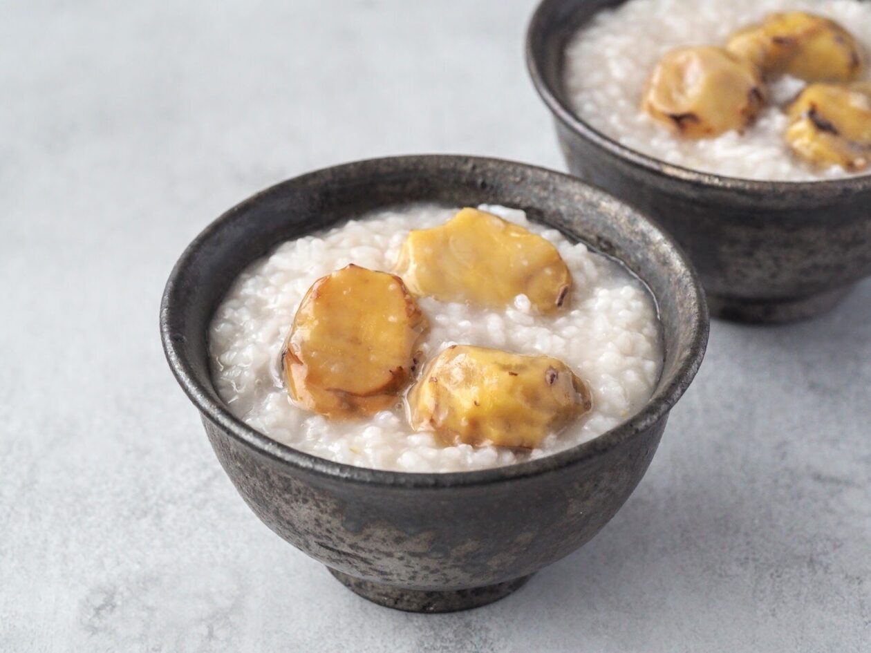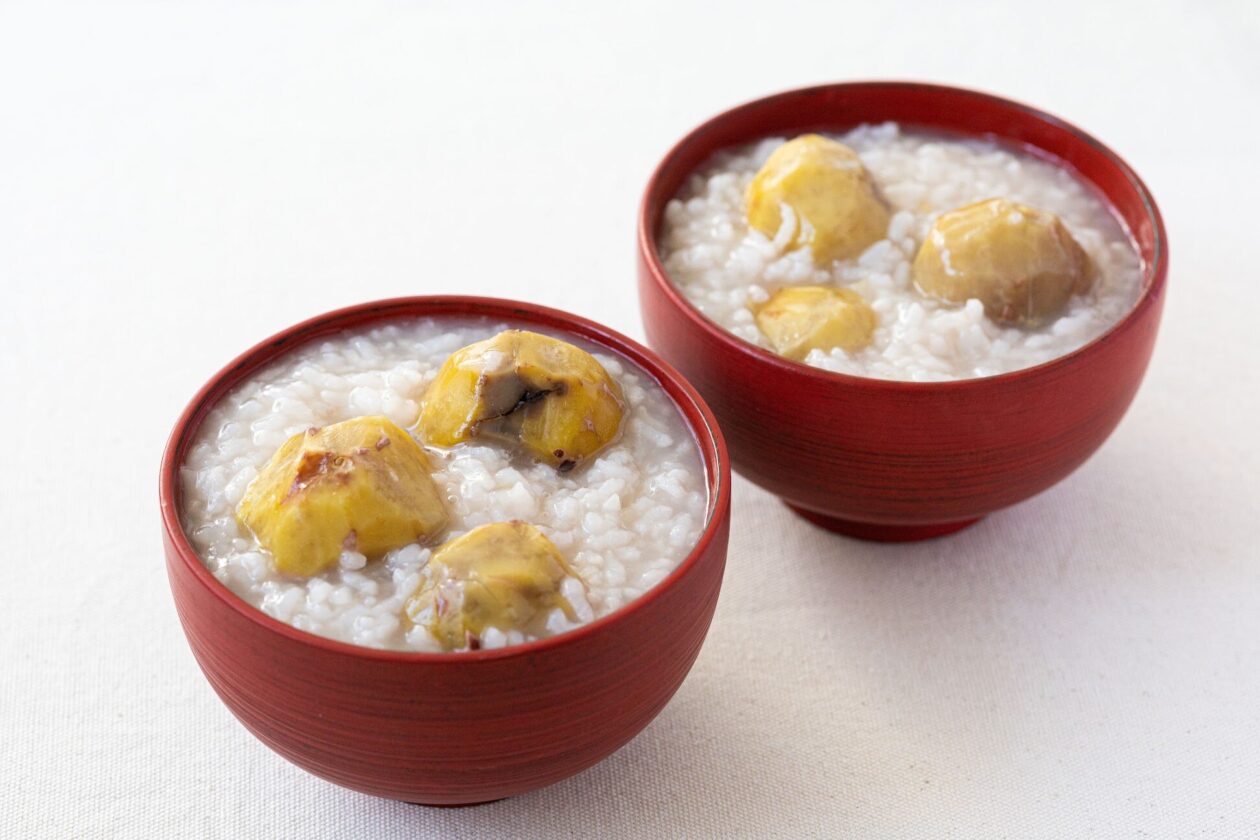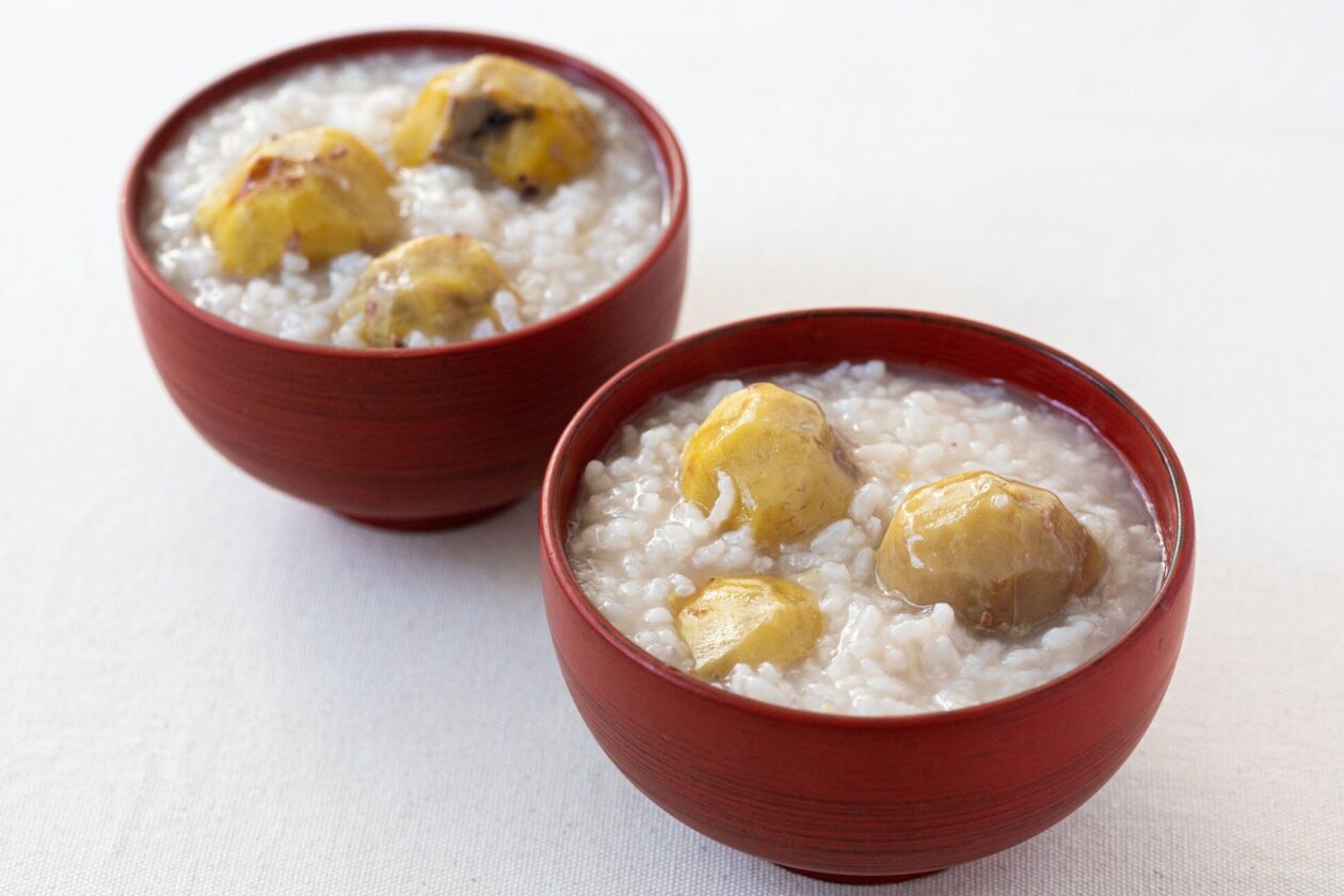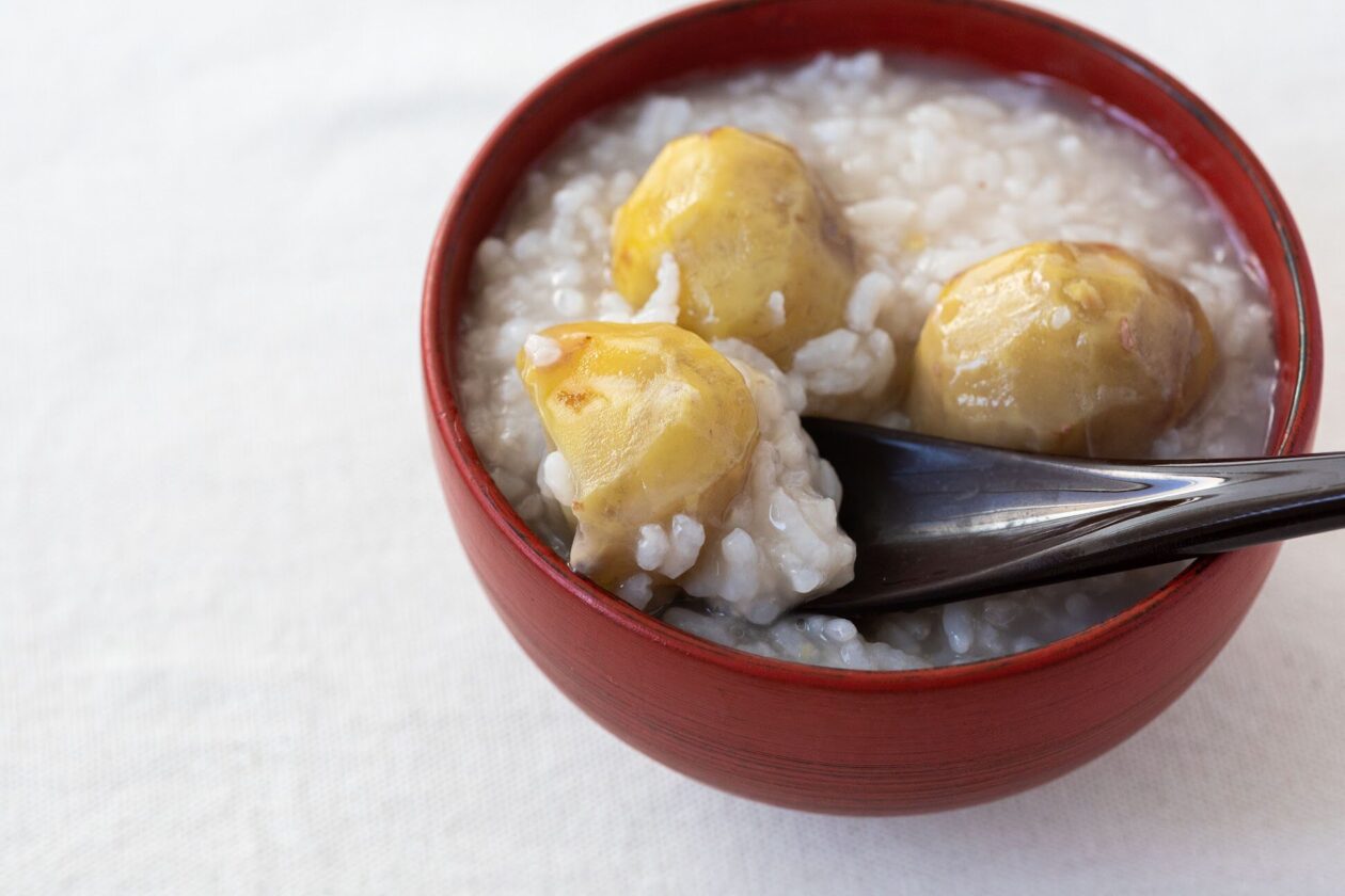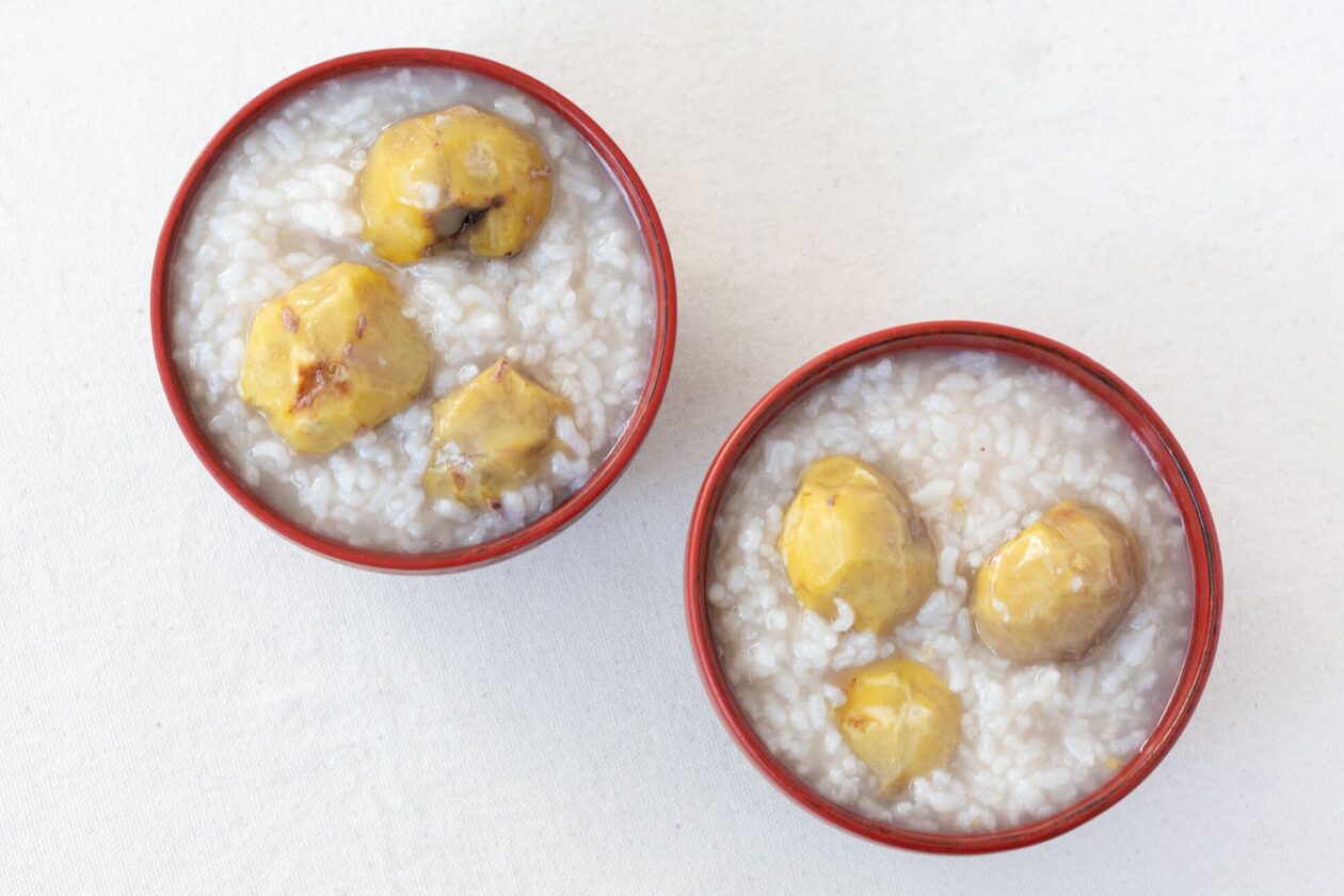 栗ごはんもおいしいけれど、栗のおかゆもやっぱりごちそう。とろとろのお米に包まれるやさしさと、栗の甘みがふわっと全体に広がるおいしさは、唯一無二です。