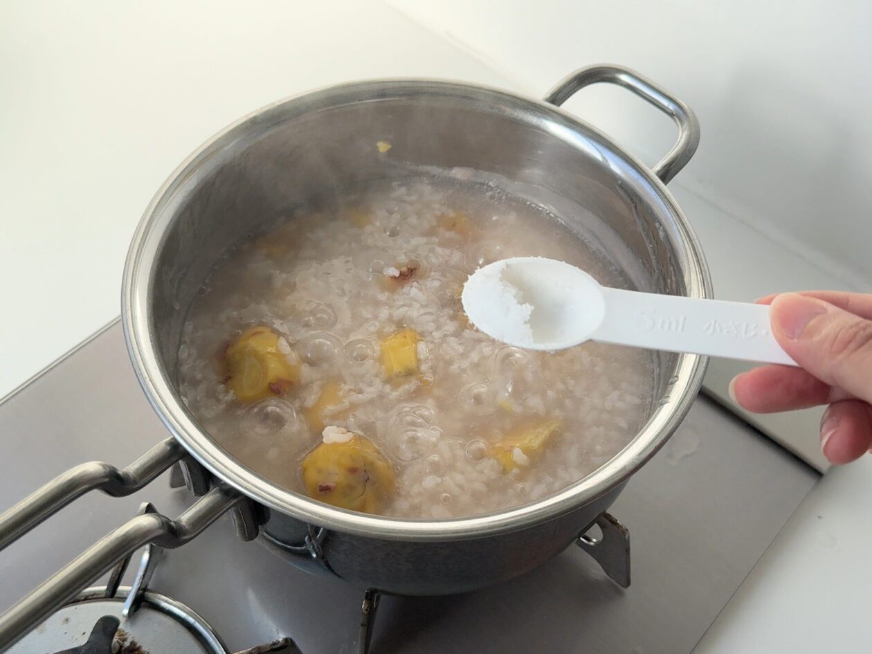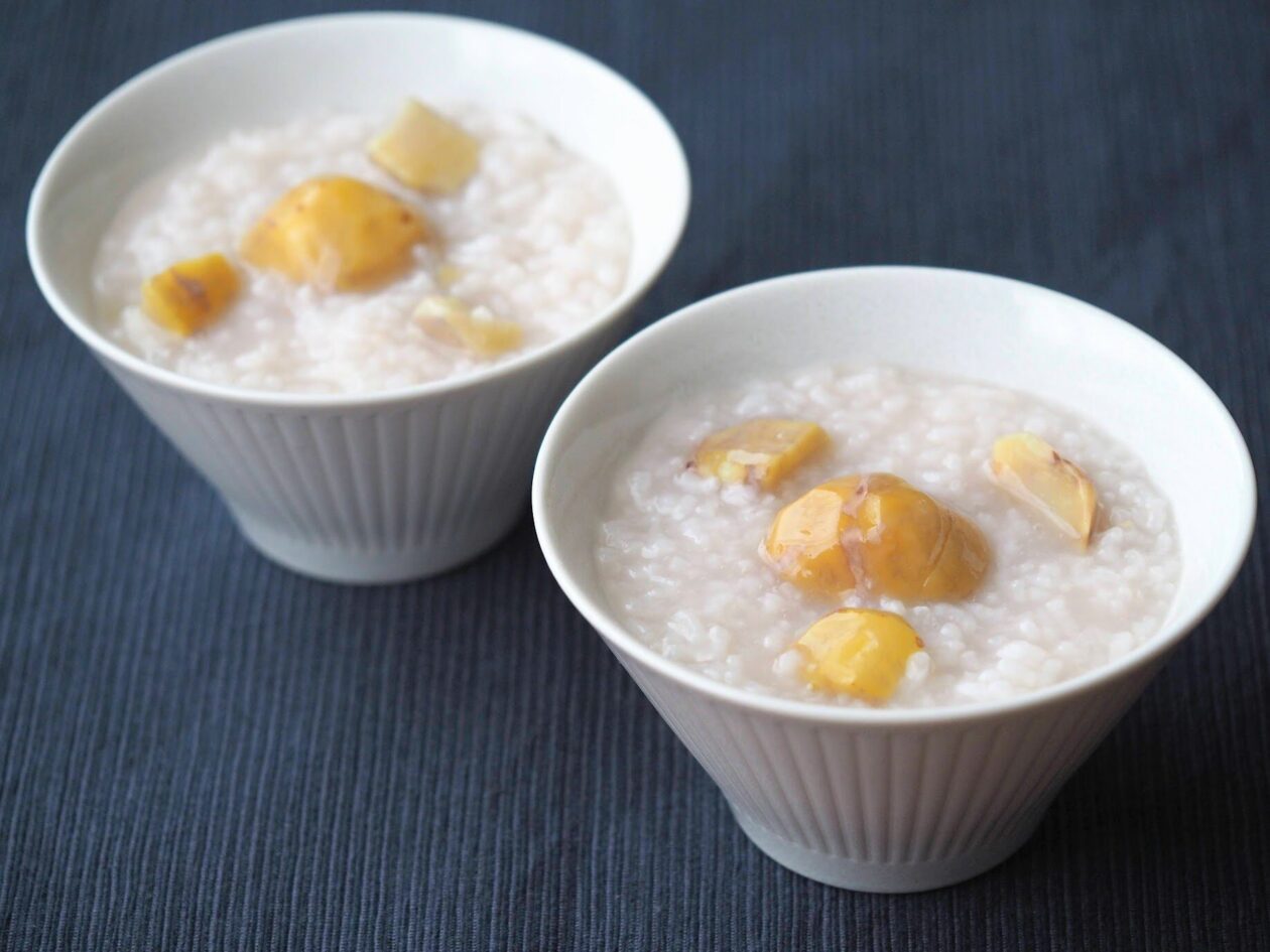 生米からつくるおかゆは、お米からしっかり甘みと旨味がでるため、米+栗+水+塩の超シンプル仕立てでもハッとするほどおいしく仕上がります◎