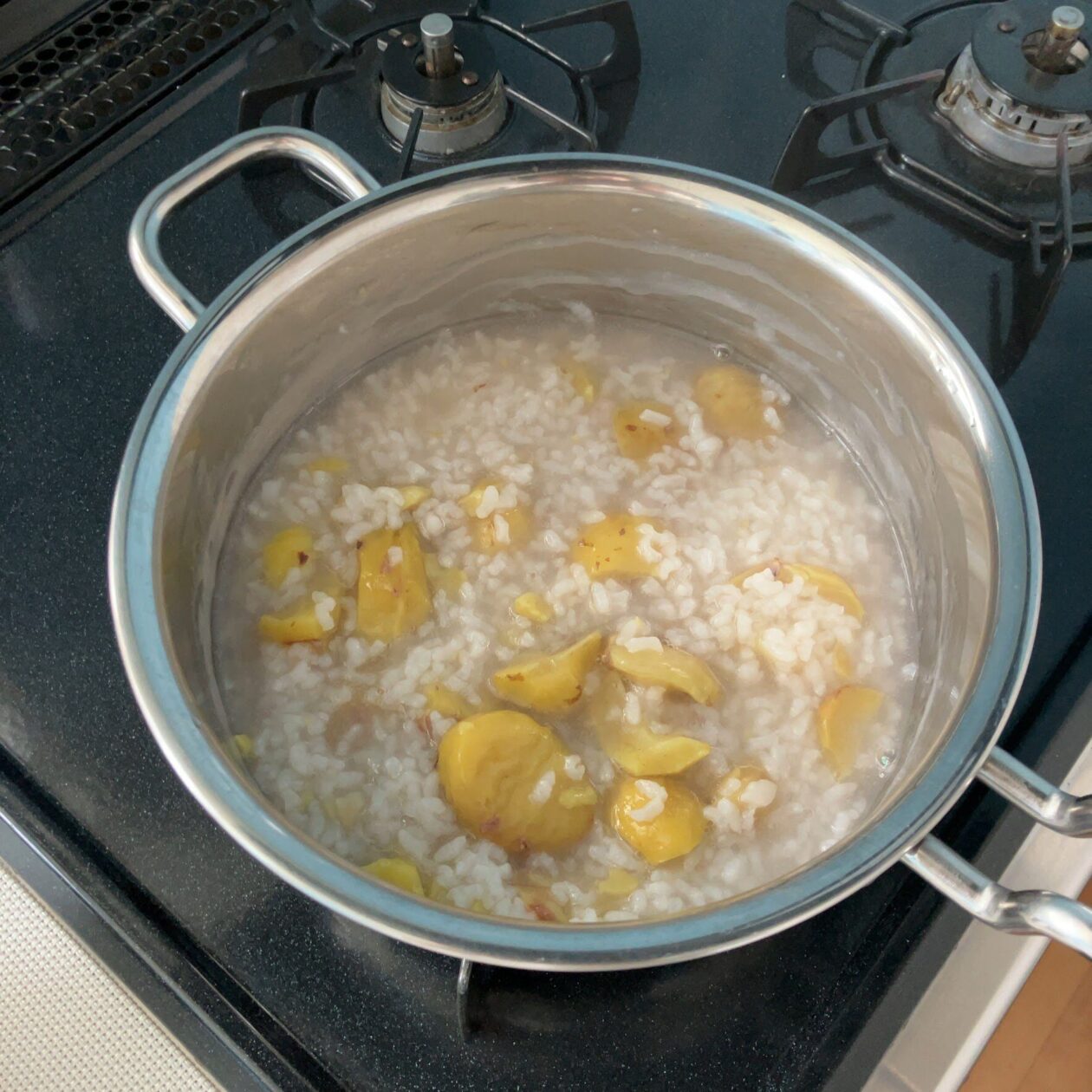 特にその年はじめの栗粥は、栗そのものの自然な旨味を堪能したいので、我が家では水で炊くことが多いです。