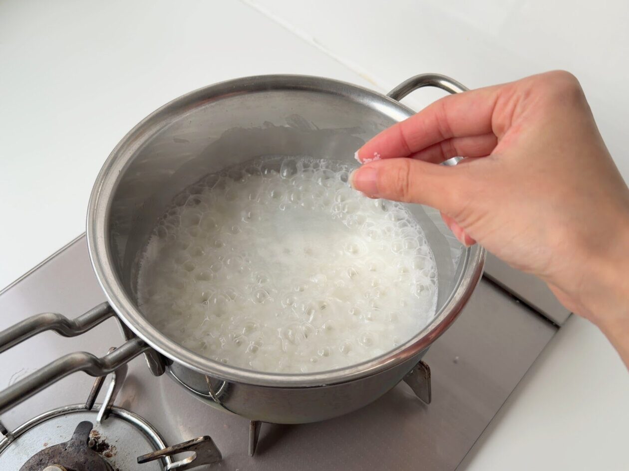顆粒だしを入れる場合は、小さじ1/4(約2g)を目安に。