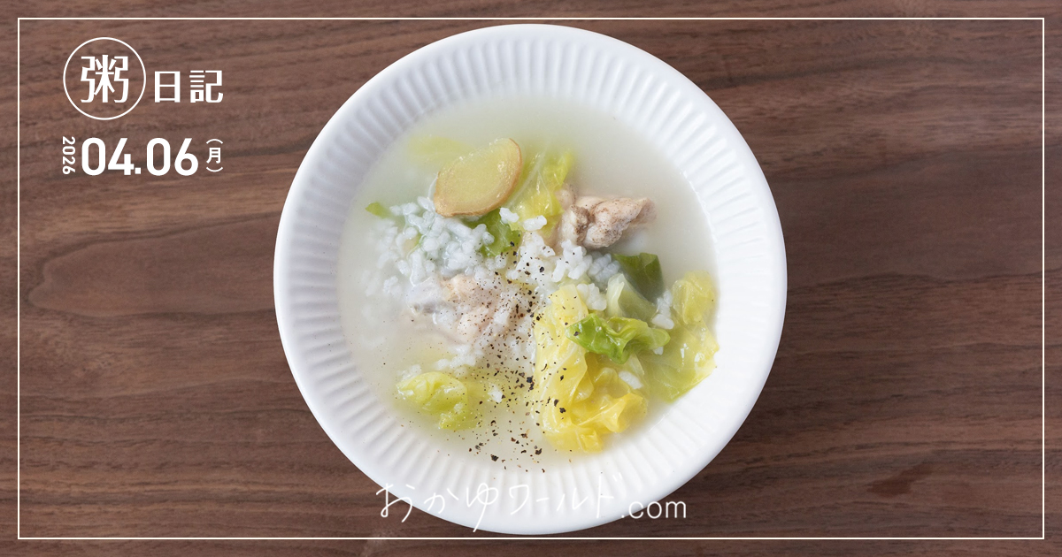 仕上げにレタスをちぎり入れて「レタスたまご粥」!