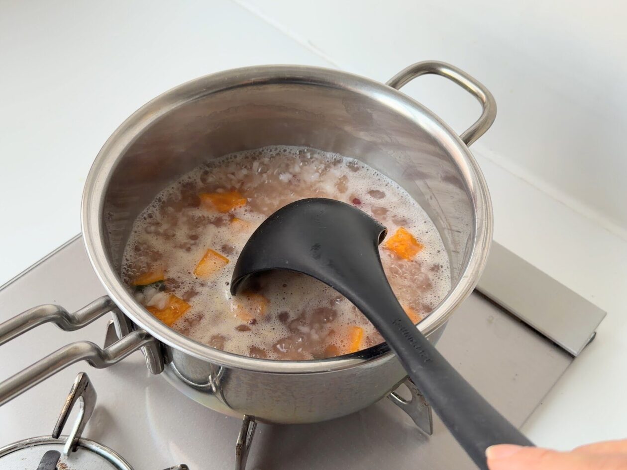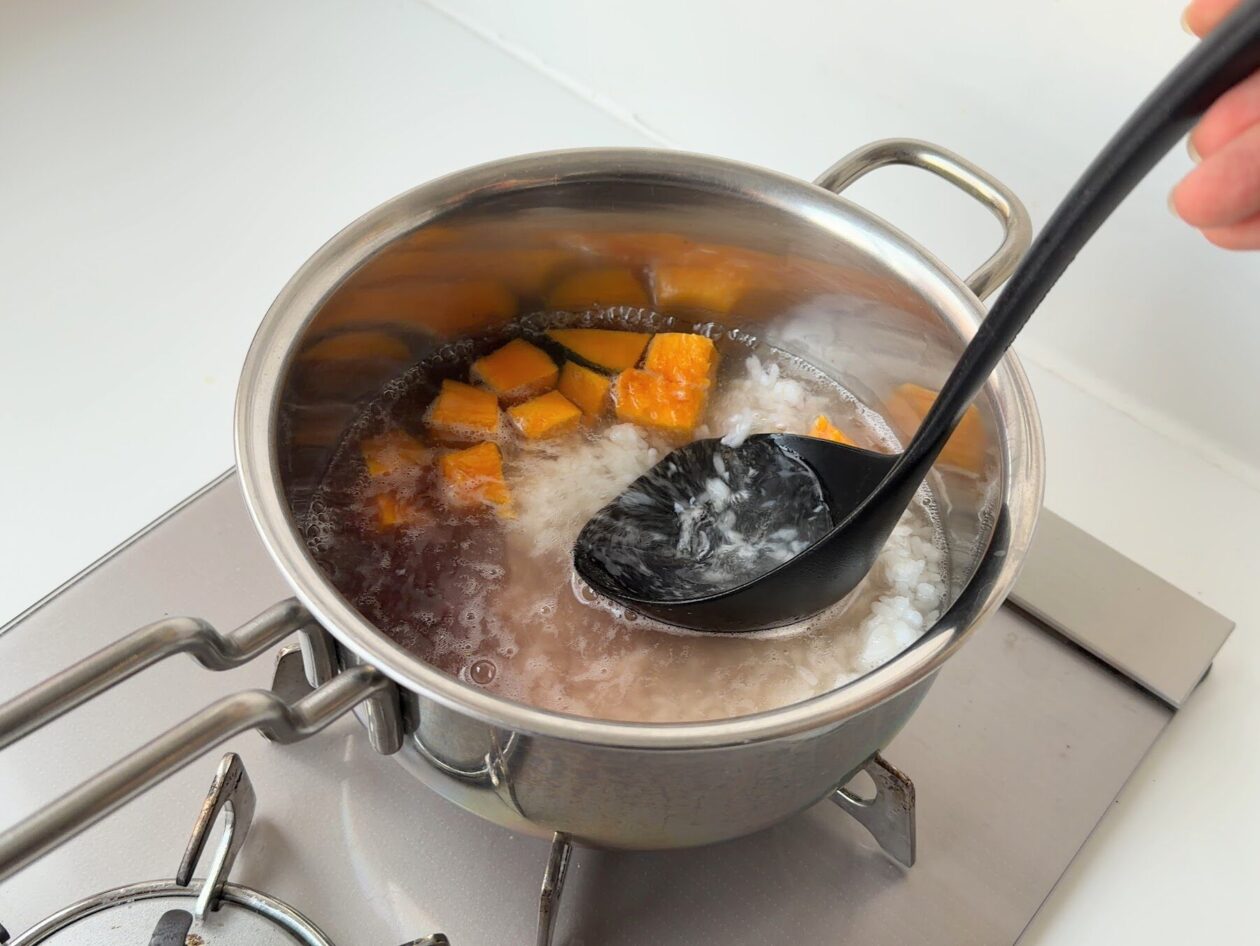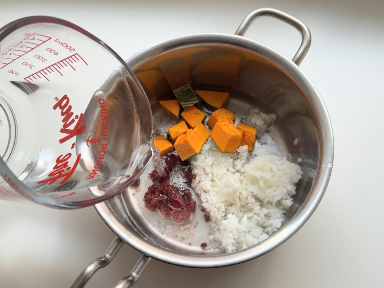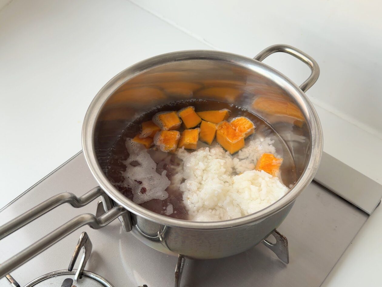 ごはんからつくるかぼちゃとあずきのいとこ粥のレシピ