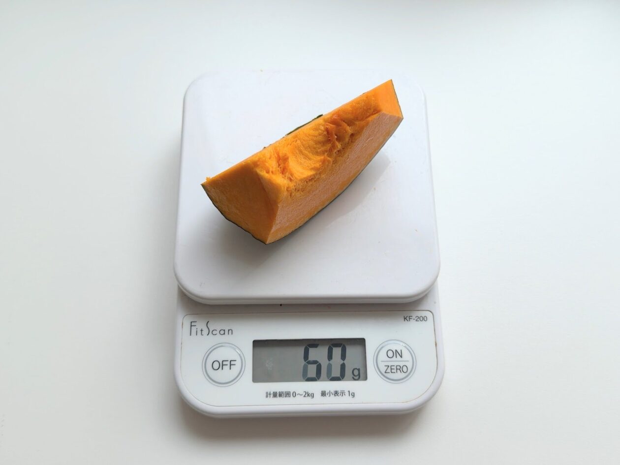 かぼちゃを2〜3cmほどの食べやすい大きさに切る。