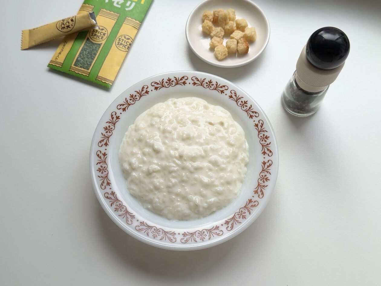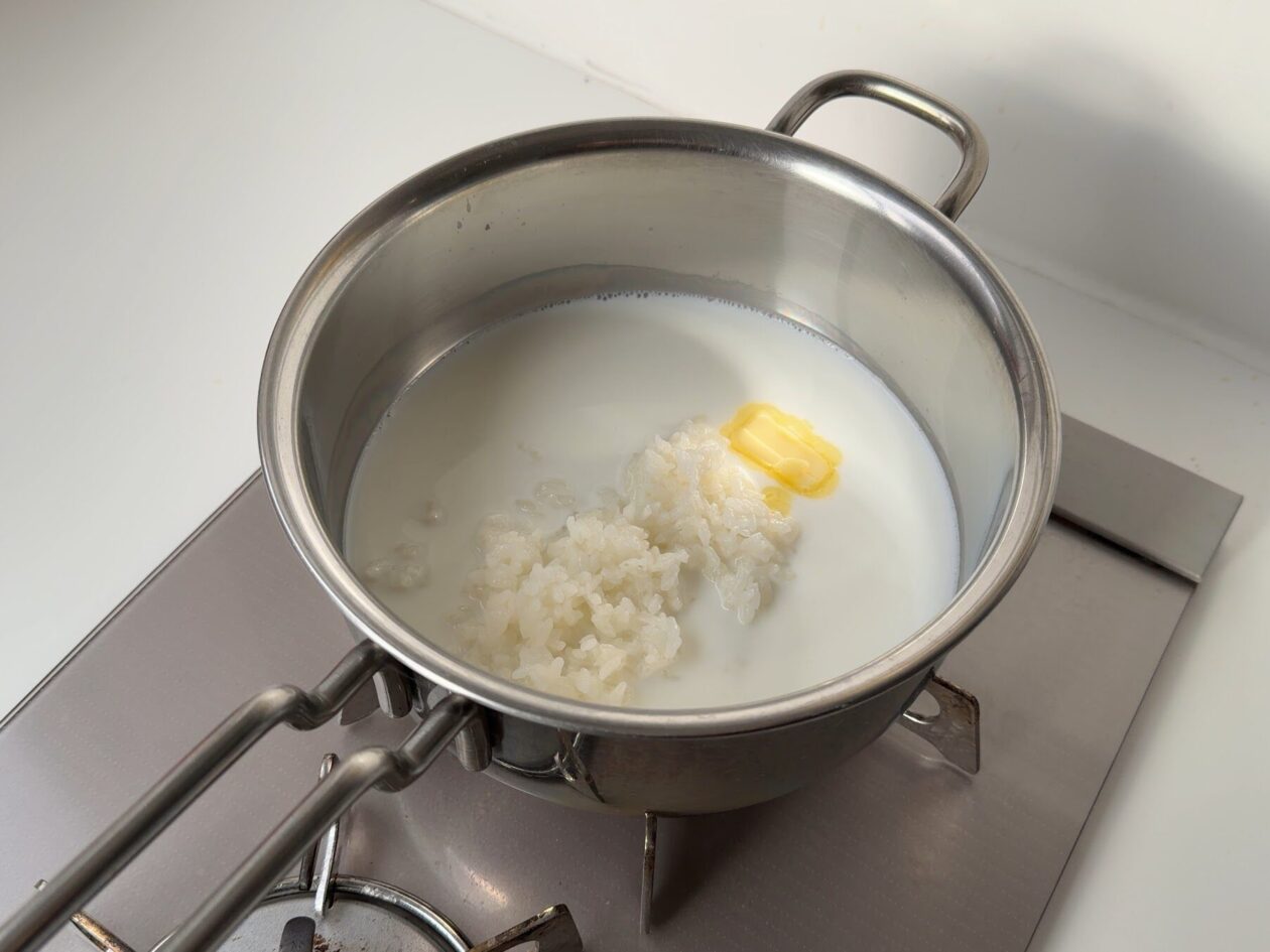 このレシピは、バター・ごはん・牛乳・水・塩のみの、いわば「基本形」。