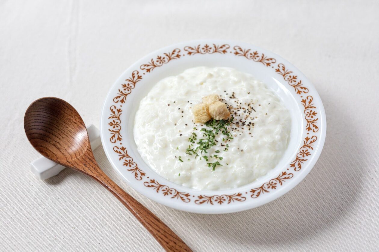 ごはんからつくるおかゆは、生米からつくるおかゆに比べて米の甘みが出にくく、さっぱりとした味わいに仕上がります。
