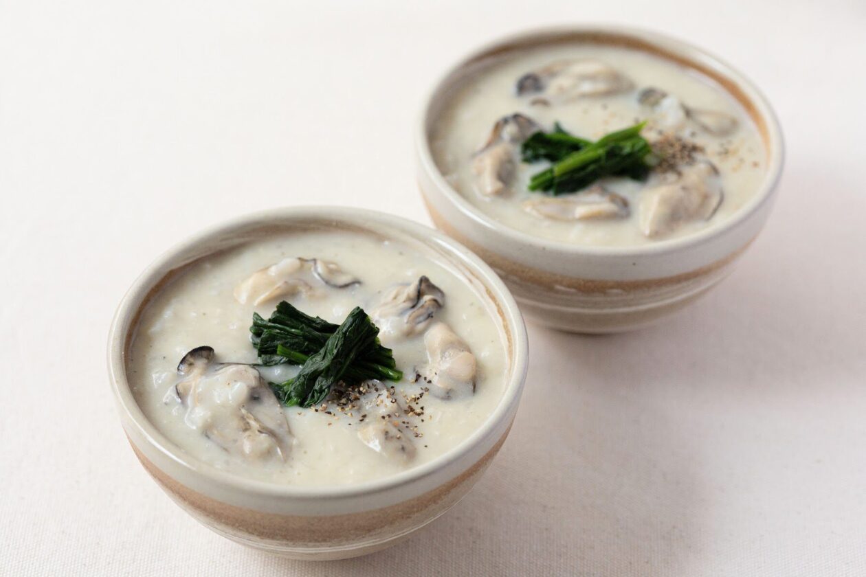 海のミルクと形容する牡蠣。ミルク粥との相性も抜群です。