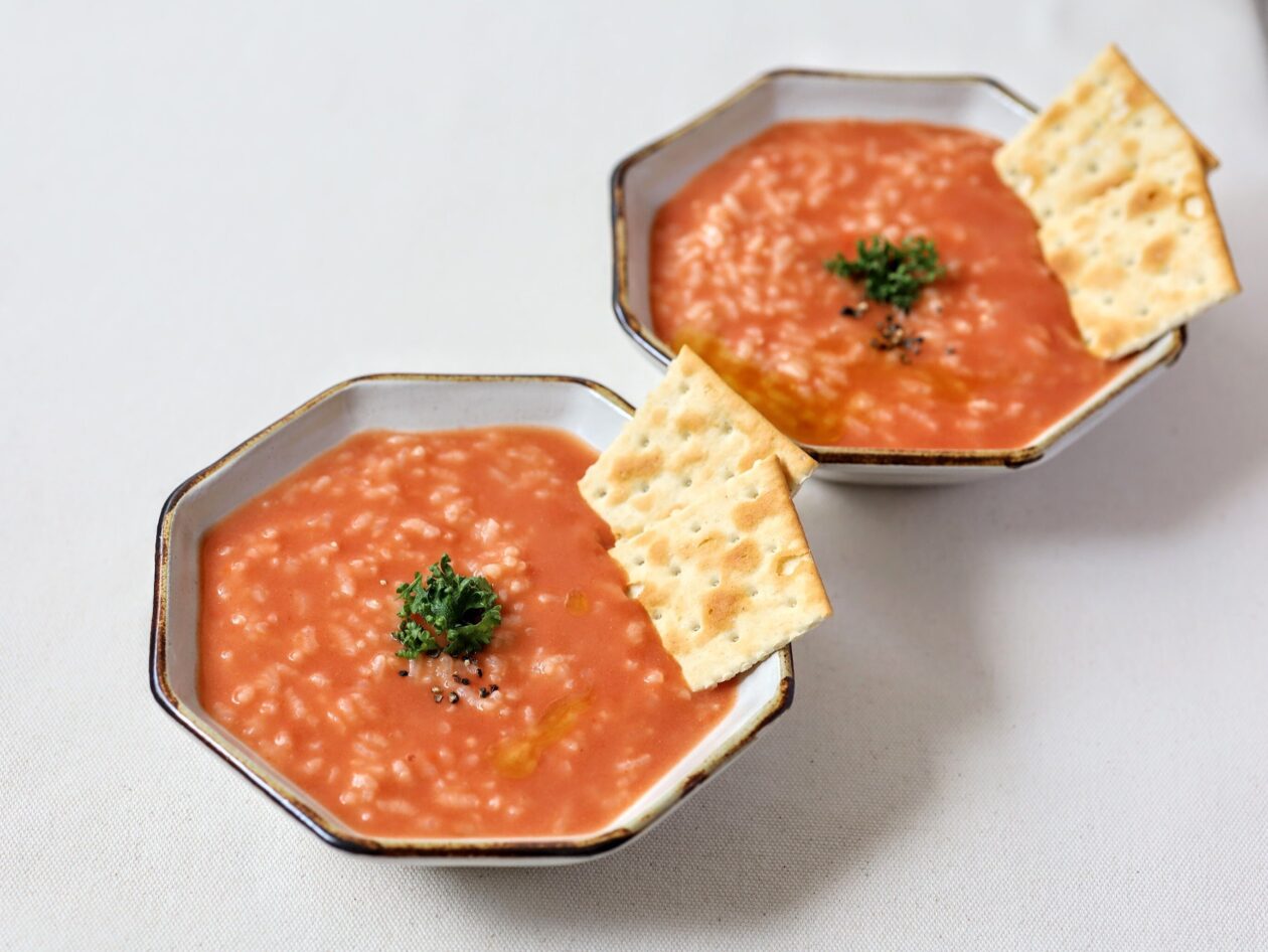 トマトジュースを入れても◎さっぱりとこってりが共存した、トマトミルク粥!