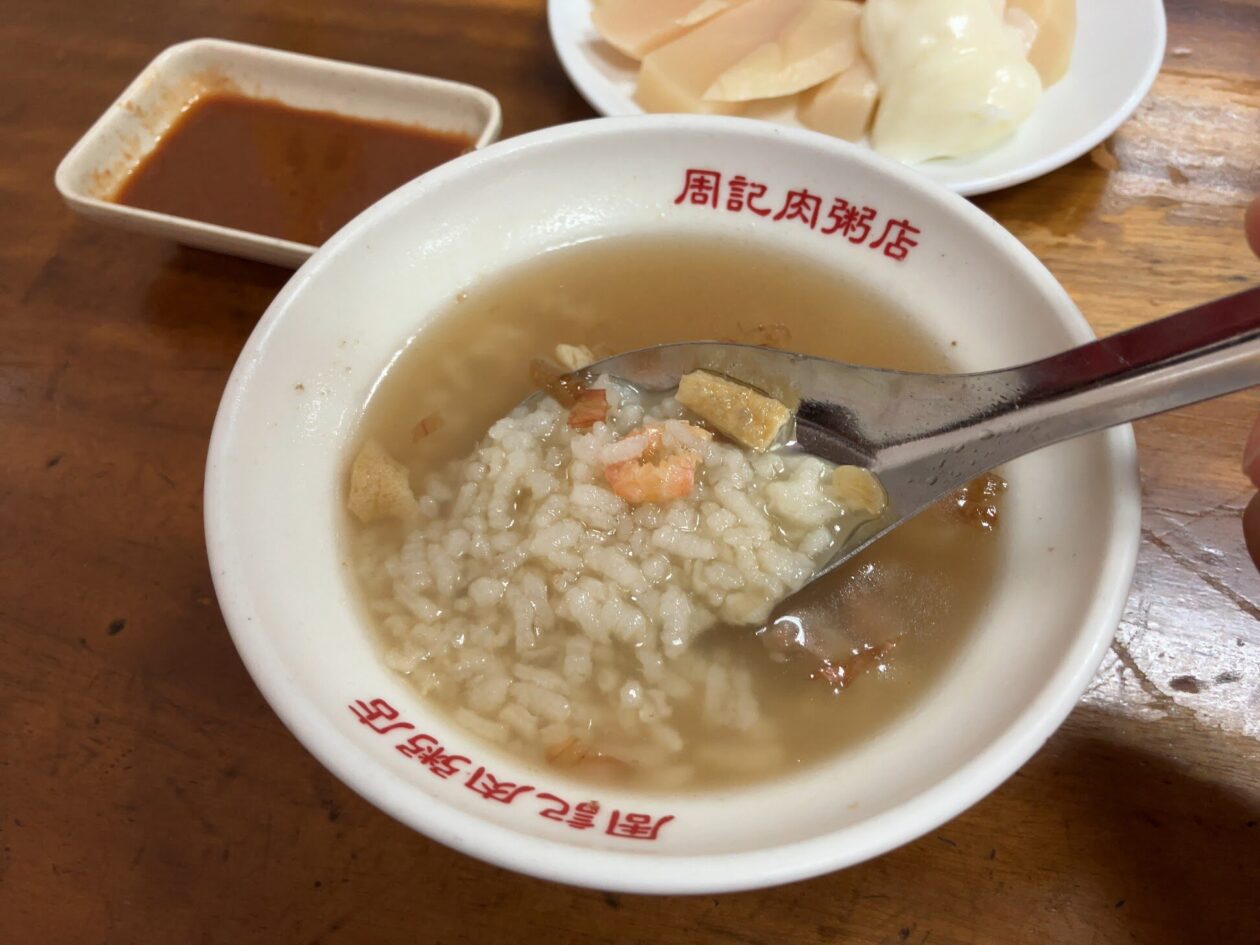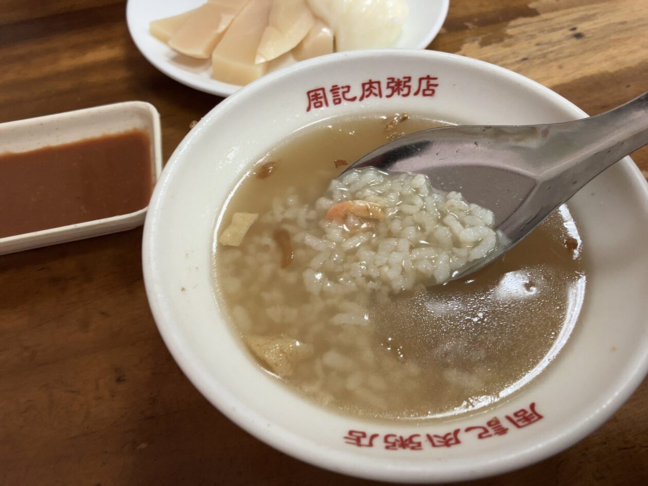 台湾の感覚ではけっこうしっかりめの味付けですが、日本の感覚だと相当薄味のおかゆだと思います。