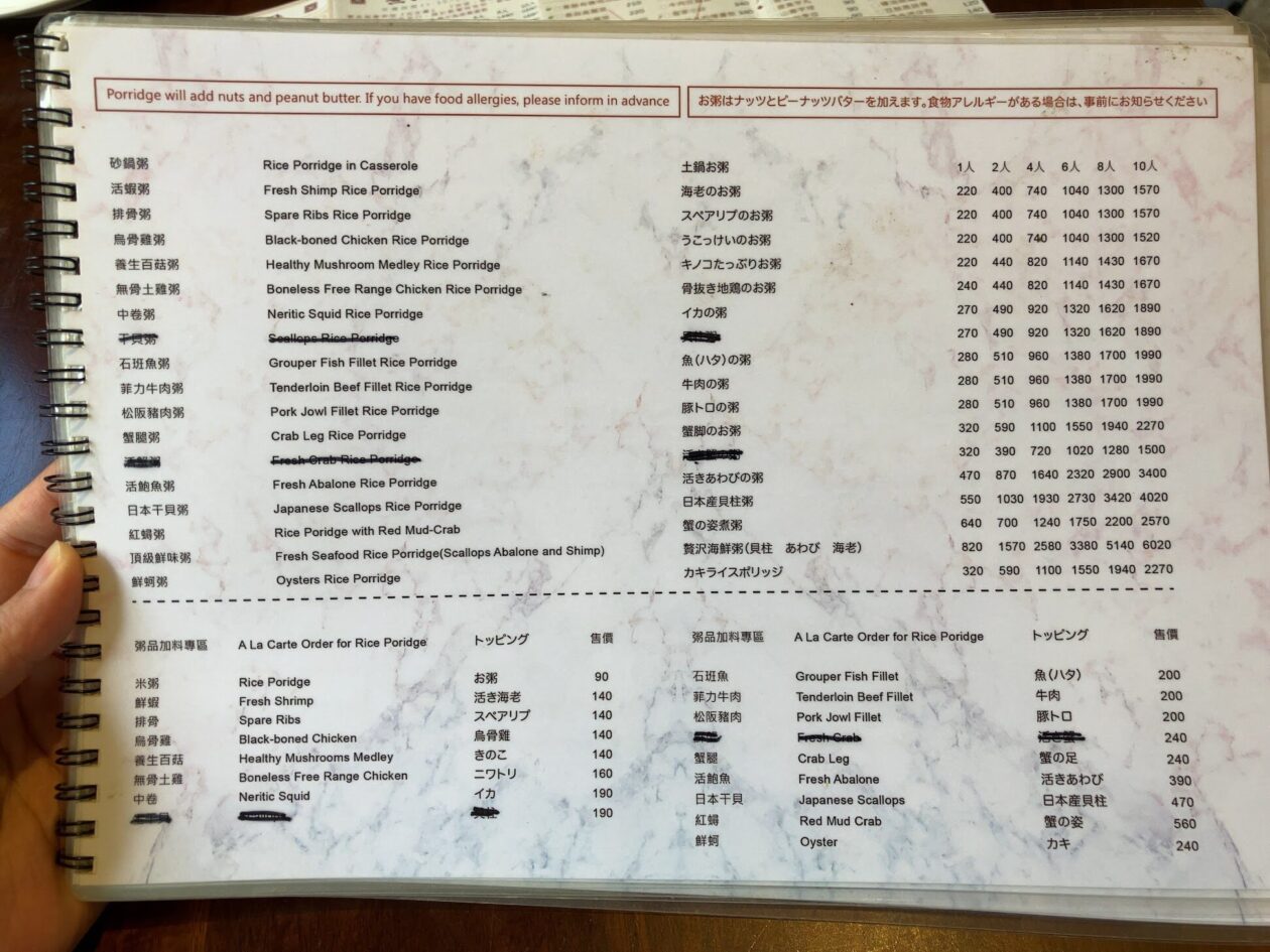 ネット上の情報には「台湾のお粥の特徴は北部は豚骨ダシ、南部は魚ダシ」と解説されているものがありますが、私個人の体感では台湾のお粥はそんなにわかりやすい分類ができるほど単純ではありません。