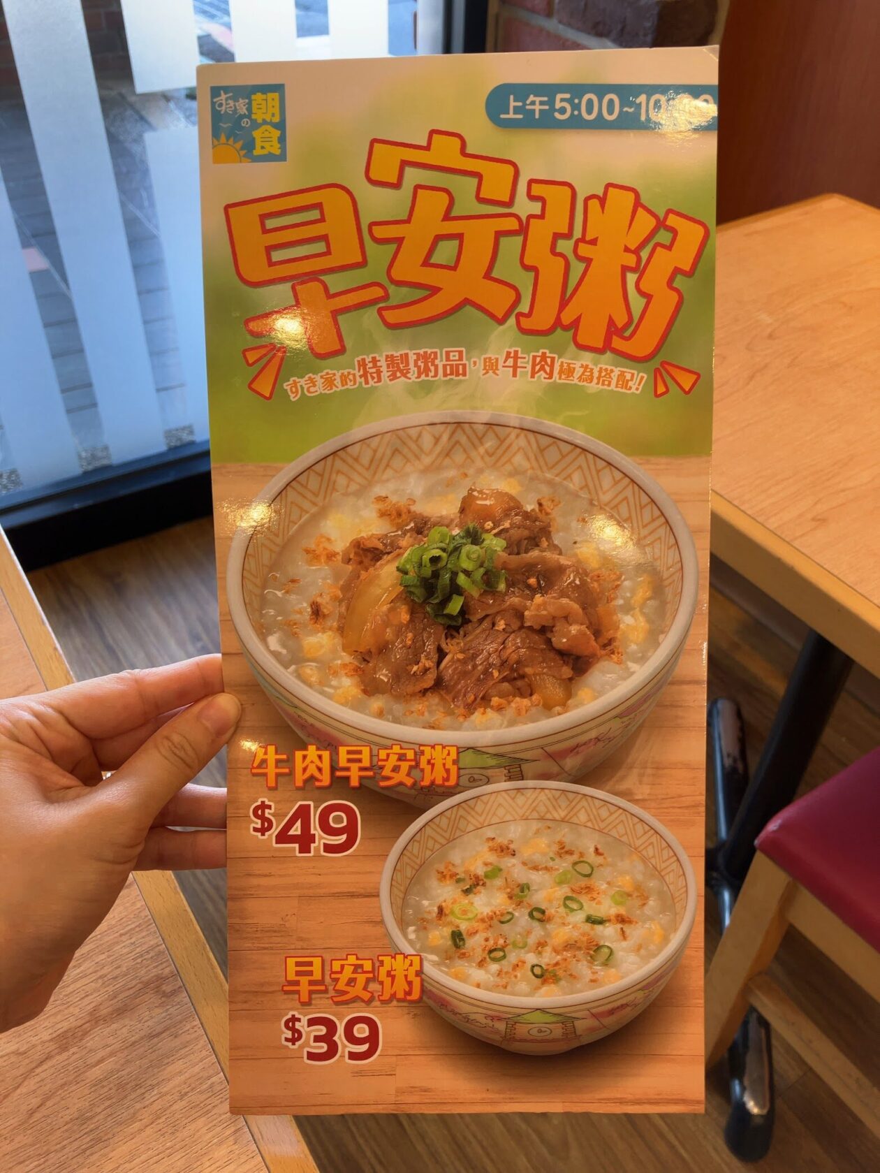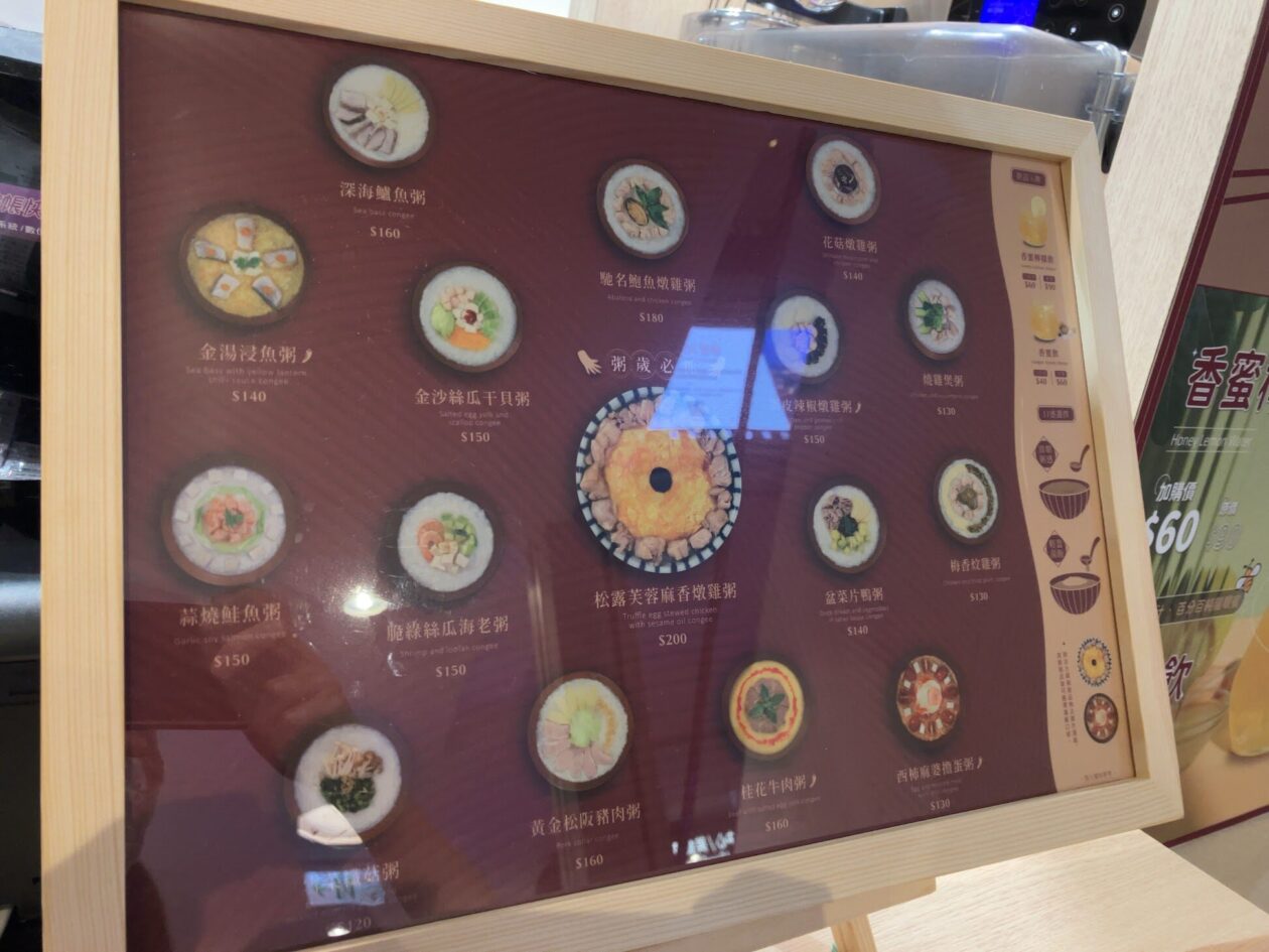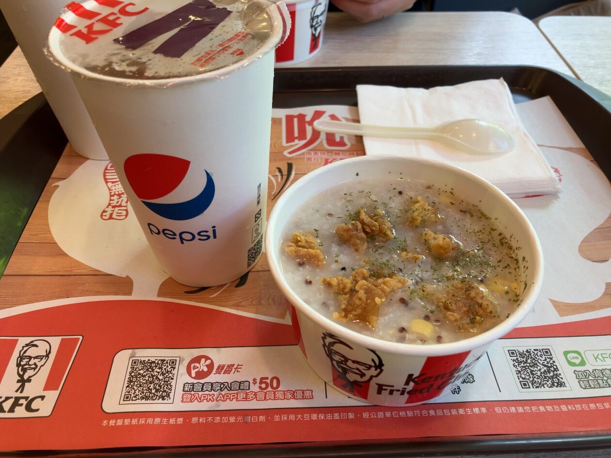 台湾ケンタッキーの朝粥でも思いましたが、ただお粥というメニューが置いてありますよ〜だけじゃなくて、ちゃんとお店の売り(チキンなり牛皿なり)が映えるように構成されているところがすごいですねぇ👏
