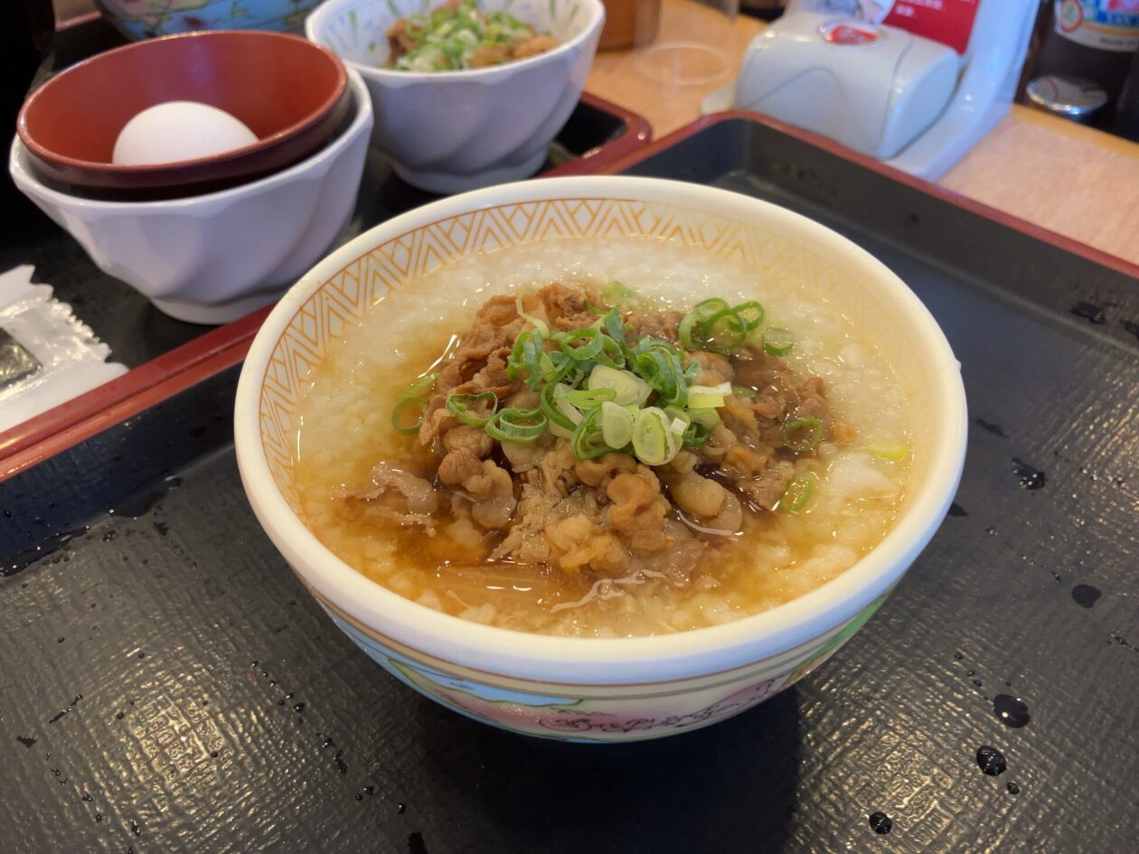 牛皿と粥って合うんですねぇ〜……!めちゃウマ!