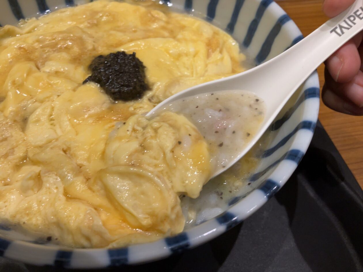 台湾ではお粥はおかずと合わせることが多いようですが、こちらは珍しく単品で食事を完成させることを想定しているお粥だからか、異色の味の濃さ。